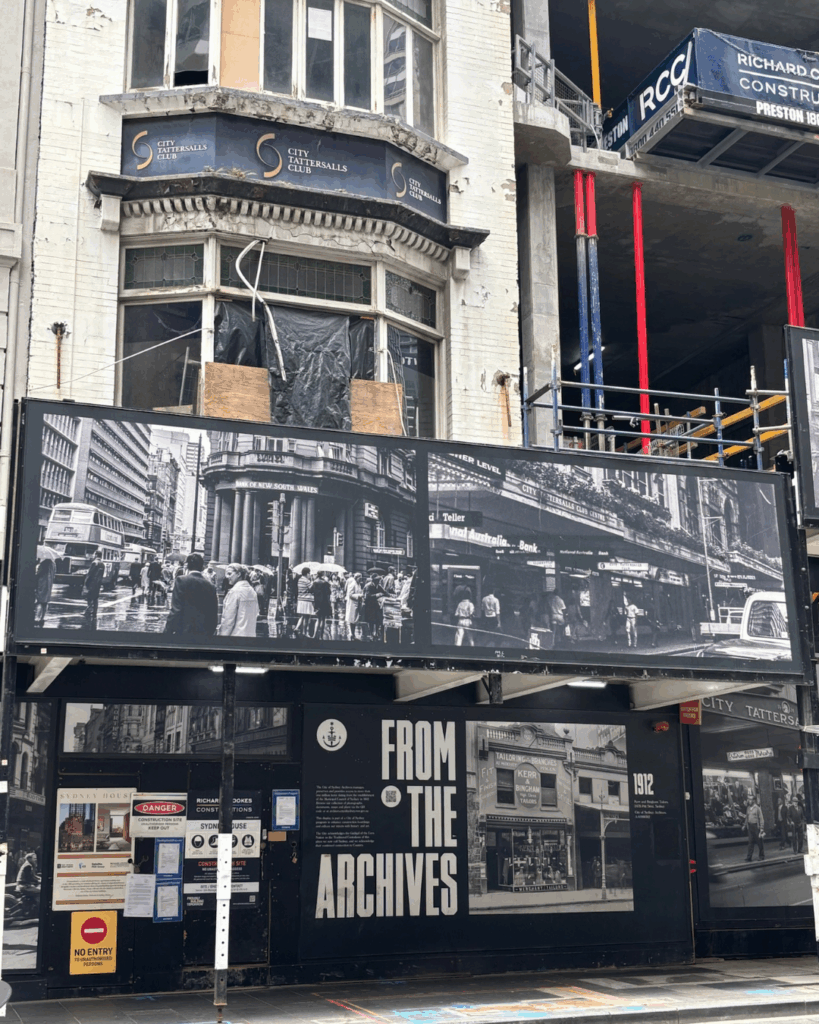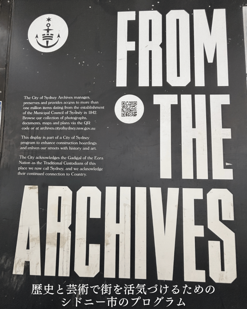 日経グローカルの記事によると、シドニー市では「クリエイティブ・ホーディングス」というプログラムを通じて、建設現場の囲いにアート作品や歴史的写真を掲出することをガイドラインで定めているそうです。
